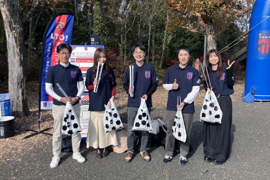 アルティウスリンクは、スポーツを通じて地域振興・活性化に継続的に取り組んでおり、J1リーグの所属クラブであるFC東京のオフィシャルパートナーを2006年から務めています。2025シーズン最終戦となる「FC東京vsアルビレックス新潟」が12月6日にホームスタジオである味の素スタジアムで開催され、試合前に実施されたプロスポーツチームおよびFC東京が推進するLTO(LEAD TO THE OCEAN)、ゴミ拾い活動に参加し、地域の環境美化に貢献しました。また、職場見学会で当社にお越しいただいた波多野豪選手(2026シーズンからV・ファーレン長崎に移籍。長崎での活躍も期待しています!)から本試合にご招待いただきました。今回は清掃活動や試合観戦のレポートをお伝えします!
