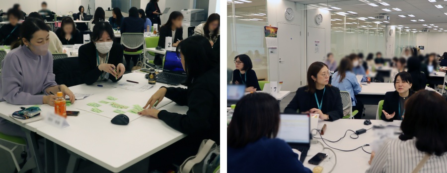 そしていよいよ研修がスタート。DE&I推進に関する基礎知識を学び、キャリア形成に関する悩みをグループで共有しました。「管理職の業務量への不安」「ロールモデルの少なさ」「家庭との両立」など、多様な意見があがりました。同じ悩みを抱える仲間がいることが励みにもなり、互いの経験から気づきが広がる時間となりました。