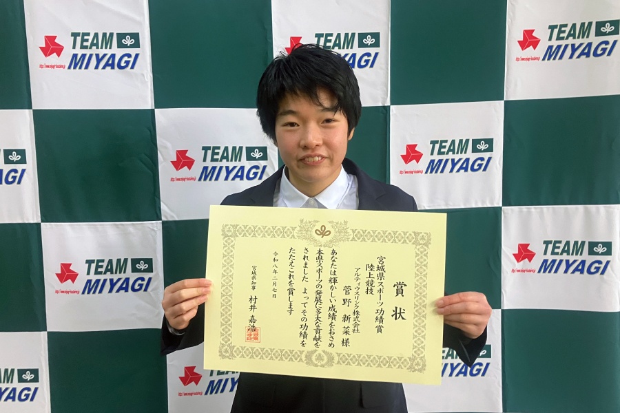 アルティウスリンクで働く、陸上競技アスリートの菅野新菜選手(所属:アルティウスリンク、仙台市クラブチーム「みやぎTFC」)が、2025年度のスポーツ競技会における優れた成果を評価され、令和7年度宮城県スポーツ賞「功績賞」※を受賞しました。2026年2月7日に宮城県庁で表彰式が行われ、菅野選手は今回で11年連続の受賞となりました。