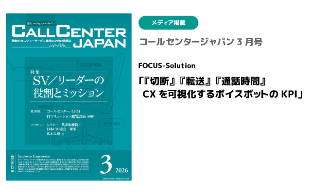 お知らせ ご案内 メンテナンス メディア掲載 組織・人事 2026 年 2025 年 カテゴリ ご案内 メンテナンス メディア掲載 組織・人事 2026 年 2025 年 メディア掲載 2026年 2026/03/23 メディア掲載 2026年 【メディア掲載】コールセンタージャパン4月号 『チャットサポート利用実態調査』 メディア掲載 2026年 2026/03/04 メディア掲載 2026年 【メディア掲載】自治体通信 Vol.72 BPOを活用した業務改善 住民の声を資産に変える業務委託で行政サービスに改善サイクルを メディア掲載 2026年 2026/03/03 メディア掲載 2026年 【メディア掲載】日経電子版「Leader's Voice」掲載のお知らせ 代表取締役社長 那谷のインタビュー記事が掲載されました 組織・人事 2026年 2026/03/03 組織・人事 2026年 組織変更および役員人事のお知らせ(2026年4月1日付予定) メディア掲載 2026年 2026/02/24 メディア掲載 2026年 【メディア掲載】コールセンタージャパン3月号掲載のお知らせ 「『切断』『転送』『通話時間』CXを可視化するボイスボットのKPI」 ご案内 2026年 2026/02/20 ご案内 2026年 当社業務受託先における情報の持ち出し事案のご報告(続報) メディア掲載 2026年 2026/02/03 メディア掲載 2026年 【メディア掲載】CALL CENTER JAPAN 健康経営促進を目的とした「オリジナル体操」を全社導入 メンテナンス 2026年 2026/01/23 メンテナンス 2026年 サーバーメンテナンスのお知らせ メディア掲載 2026年 2026/01/13 メディア掲載 2026年 【メディア掲載】文化放送ラジオ出演のお知らせ 「HENNGE presents BIZ-TECH Lounge」 メディア掲載 2025年 2025/12/22 メディア掲載 2025年 【メディア掲載】コールセンタージャパン1月号掲載のお知らせ 「キーマンに聞く BPO市場の展望2026」 ご案内 2025年 2025/12/15 ご案内 2025年 当社業務受託先における情報の持ち出し事案のご報告 もっと見る