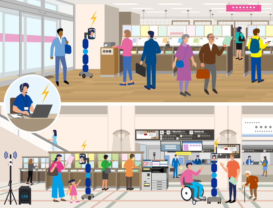昨年度に実施した実証※1から発展させ、大田区本庁舎内だけでなく千束特別出張所にもnewmeを配置し、一拠点から複数箇所のnewmeを遠隔操作して「遠隔区民サービス」の実証を行います。