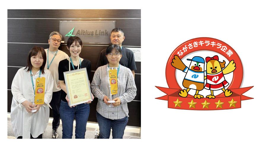 アルティウスリンク株式会社(所在地:東京都渋谷区、代表取締役社長:若槻 肇、以下当社)は、「長崎県誰もが働きやすい職場づくり実践企業認証制度(略称:Nぴか)」において、最高位の「五つ星」認証を取得しました。