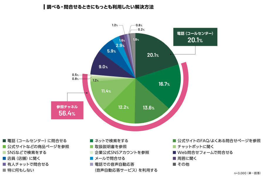- 消費者の約8割が自己解決を試みる傾向にあり、参照チャネルの充実化がカギ