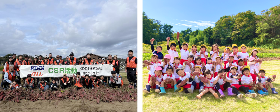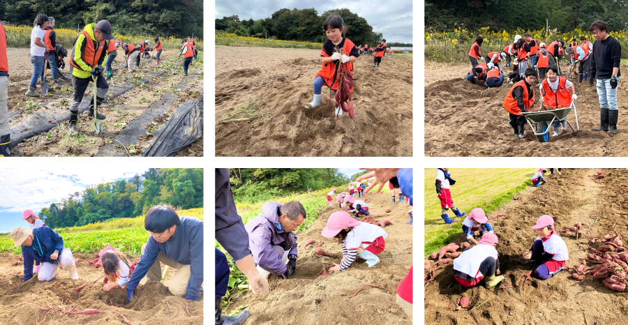 こうした取り組みの一環として、毎年地元幼稚園の年長児を対象に芋ほり体験イベントを実施しています。また、KDDI東北総支社による芋ほりボランティア活動も2018年から継続的に行われています。この活動は、地域の子どもたちに農作業を身近に感じてもらうとともに、地域社会との関係を深める機会としても意義あるイベントです