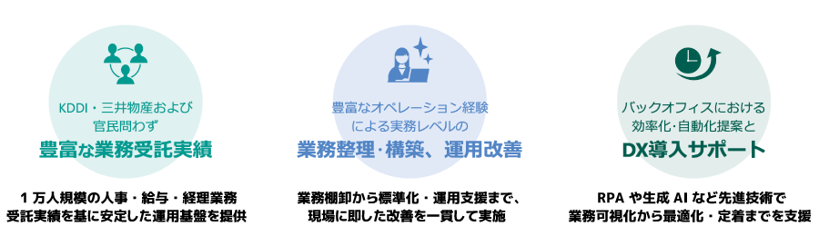 - 豊富な業務受託実績に基づく、オーダーメイドの業務構築と生産性の高いオペレーション運営