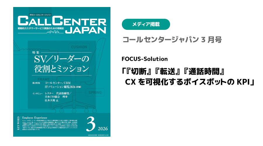 リックテレコムが発行する「月刊コールセンタージャパン」3月号のコーナー「FOCUS-Solution」にて、「ボイスボットのKPI」をテーマとした記事が掲載され、アルティウスリンクの取り組みが紹介されました。